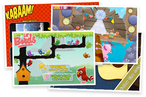 At the time of this writing we are aware of over a hundred apps on the AppStore that are based on the Sparrow Framework and these are just those from developers who took the time to publish their games in the Sparrow Wiki. The dark figure may very well be higher. Amongst those great apps are Villain’s cuteness machine Lil’Birds as well as the easy on the eye Roodie Noodies and the Slippery Pole from Complete Control. Furthermore there is the great Gravity Guitar from squarepoet and our very own comic strip generator Kabaam.