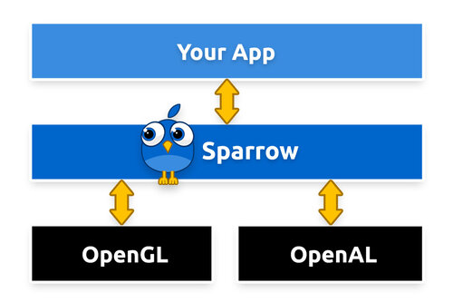 Fortunately you don’t need to because Sparrow gets its hands dirty for you: The framework wraps away the bad and the ugly and hands you a clean interface into which you can plug your game or app without coding a single line of OpenGL.